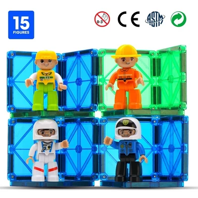 Pick Your Profession. Children love dreaming about their future careers, and these magnetic figures make exploring their future fun and educational! Each set includes multiple life figures and professions, all equipped with magnetic feet to carry them around their magnetic tiles building blocks cities. Figures have moveable body parts and a head that turns 360 degrees as well.