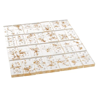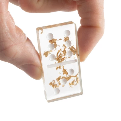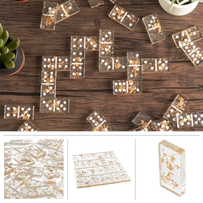 - COFFEE TABLE DÉCOR – This cool acrylic décor has a sleek appearance with gold flakes inset in each clear domino. Display this luxe dominos game on your coffee table or showcase it on your desk for a fun and functional conversation piece.