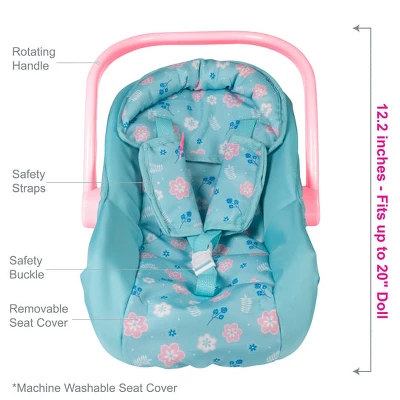 Make PlayTime fun again! ADORA’s Flower Power Car Seat is a must-have baby doll toy accessory for all the kids! This baby doll car seat is stylish yet functional with lots of floral fun and easy to carry for the little hands. This doll car seat features our new, bright blue, pink & white fun, flower print and can fit plush toys, stuffed animals, and dolls up to 20 inch in length. It has safety straps to ensure dolls & plush are snug and secure while on the road, or when your kids prefer to carry them around to the playground. Best thing is, its sturdy pink handle also rotates to become a stand!Flower Power Car Seat has a 100% Machine Washable removable seat cover, so no need to worry when your little one makes a mess! Time to buckle in your favorite and go on an adventure with this trendy doll car seat! Ages 2 and up. ?Doll pictured is sold separately.