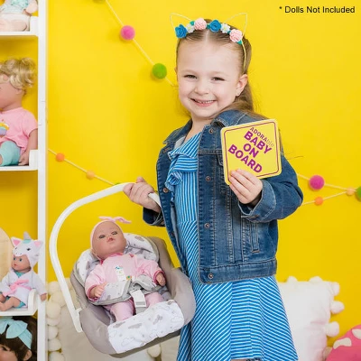 Ready for a twinkle adventure? ADORA’s Twinkle Stars Baby Doll Car Seat is a must-have doll accessory for all doll lovers! This baby doll car seat can easily fit most plush toys, stuffed animals, and dolls up to 20 inches in length like our ToddlerTime Dolls or our 16 Adoption Babies collection.Adora Twinkle Stars Car Seat features a dreamy gender-neutral grey & white cloud print with glitter star accents. This doll car seat is not only ADORAbly stylish but also functional”your baby doll can be easily carried by its sturdy white handle that also rotates to become a stand! Adoras Twinkle Stars Baby Doll Car Seat has a 100% Machine Washable removable seat and safety straps so your little ones toy is snug, safe, and ready for an adventure! Buckle in your favorite Adora doll in this gender-neutral car seat and watch your parent-in-training nurture & care for their baby during travel. Doll pictured is sold separately.
