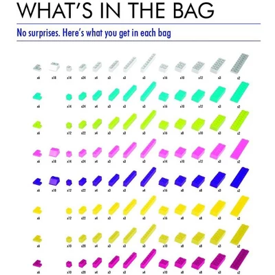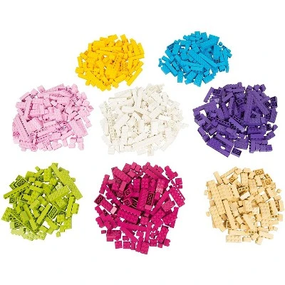 1,000 piece bag of building bricks, 8 unique pastel colors including purple, pink, light green & light blue. 1,000 piece set works with all major brands at an affordable price. Variety of unique shapes and colors-. Perfect brick set at half the cost. All the building blocks you need in one convenient pack!