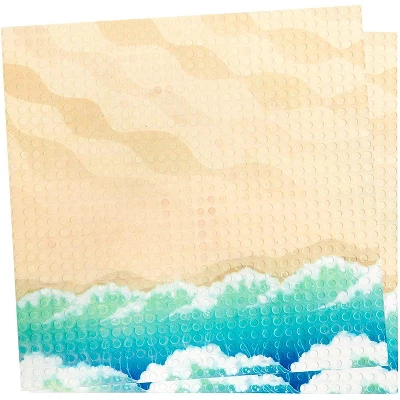 Set of 2 Large 10″x10″ Double Sided Building Brick Baseplates in Beach Design. 100% Compatible with all major brick sets. Dual connectivity allows you to place bricks on the top and bottom! Great baseplate for an activity table. Perfect gift for kids birthdays, holidays, and other special occasions. Ages 3 and up.