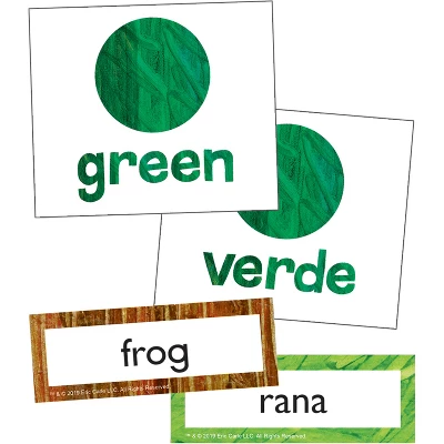 Content-rich teaching resources provide an effective way to help students learn essential skills in the classroom.Easy to read and use, Brown Bear, Brown Bear, What Do You See?� Learning Cards offer a fun, hands-on way to help students retell this loved story, learn numbers and days of the week, and much more! Featuring well-loved figures from the imagination of Eric Carle, this 54-piece set also includes 9 color word cards and 11 character word cards in both English and Spanish.Brown Bear, Brown Bear, What Do You See?� Learning Cards include: 1 title card and 11 picture cards. In both English and Spanish: 9 color word cards; 11 character word cards; 1 activity guide.Children and adults alike will recognize and enjoy the distinctive style of Eric Carle, a beloved illustrator of children’s books. His hand-painted tissue collages and familiar characters enhance a new line of Carson Dellosa classroom products, from flash cards to bulletin boards and much more. They are designed to both educate and delight students of all ages. Use these Eric Carle items to turn your classroom into a magical space of learning, creativity, and inspiration.