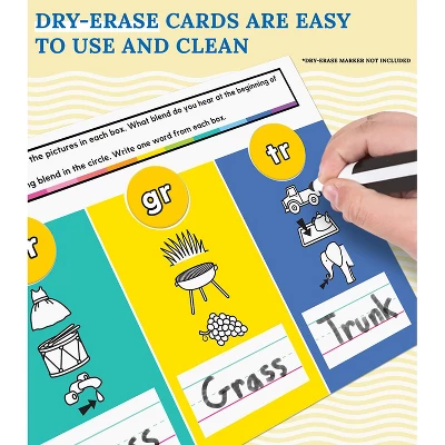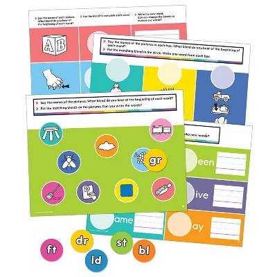 Carson Dellosa Education Edu-Clings Silicone Center: Beginning and Ending Blends | The Edu-Clings Silicone Center: Beginning and Ending Blends will support students’ foundational reading skills as they work with common blends such as fl-, bl-, dr-, tr-, -nd, -mp, and more. This easy-to-clean, 25-piece resource provides a revolutionary hands-on learning experience for both at home or in the classroom. Each dry-erase mat measures 8.5 inches x 11 inches, with each manipulative measuring approximately 1.97 inches in diameter.Edu-Clings are the perfect hands-on learning manipulatives. They encourage discovery and deeper understanding at home and in the classroom. The innovative silicone material is easy to clean, quiet, durable, and clings to all nonporous surfaces without leaving any residue. It’s dishwasher safe so you can sanitize regularly and easily. You can even write on it with dry-erase markers! Warm water and a touch of dish soap will always make it cling like new. From individual center activities to larger manipulatives that are perfect for whiteboards, Edu-Clings will revolutionize hands-on learning at home and in the classroom.