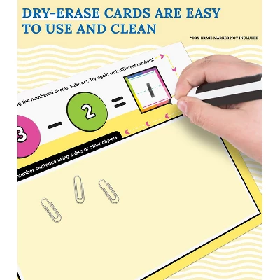 Carson Dellosa Education Edu-Clings Silicone Center, Number Sentences | The Edu-Clings Silicone Center: Number Sentences will support students as they work with foundational addition and subtraction skills such as composing and decomposing numbers, making 10, and place value concepts. This easy-to-clean, 22-piece resource provides a revolutionary hands-on learning experience for both at home or in the classroom. Each dry-erase mat measures 8.5″ x 11″, with each manipulative measuring approximately 1.97″ diameter.Edu-Clings are the perfect hands-on learning manipulatives. They encourage discovery and deeper understanding at home and in the classroom. The innovative silicone material is easy to clean, quiet, durable, and clings to all nonporous surfaces without leaving any residue. It’s dishwasher safe so you can sanitize regularly and easily. You can even write on it with dry-erase markers! Warm water and a touch of dish soap will always make it cling like new. From individual center activities to larger manipulatives that are perfect for whiteboards, Edu-Clings will revolutionize hands-on learning at home and in the classroom.
