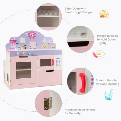 - Safe Material & Sturdy Construction: Made of superior MDF material which is more durable than plastic,our educational kitchen cooking toywhich has passed ASTM standard is sturdyand safe for kids to play. Besides, the surface is covered with non-toxic and eco-friendly paint which won’t do harm to kids and will provide a safe playing environment.