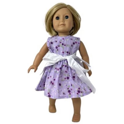 Size 4 matching girl and doll long purple flower print dresses are cotton blend fabric.The child dress is 30.5 inches from shoulder to hemline.It is 12 inches from side seam to side seam at the waist.Handmade and machine washable fabric.The doll dress is versatile and fits 18 inch girl dolls and 15 inch baby dolls.This listing is for one child and one doll dress, the doll is not included.