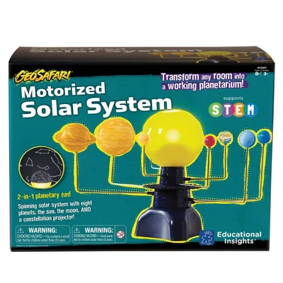 - Encourage your little astronomer to explore the solar system with this motorized model that includes the sun, 8 planets, and the earth’s moon. Inner and outer planets move at 2 different speeds to more realistically replicate the planets’ movement around the sun