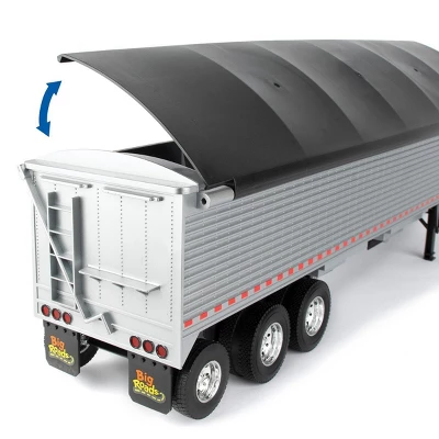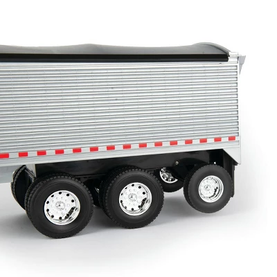 This 1/16 scale Peterbilt Model 367 with Grain Trailer is made by ERTL and is part of ERTL’s Big Roads playable toys series! The Peterbilt truck features lights & sounds, opening cab doors, steerable front wheels, adjustable tag wheels and mirrors. The trailer features an opening tarp, opening grain hopper doors, movable jack stand and adjustable tag wheels. This item requires 3 AAA batteries (included). According to the manufacturer, it has a recommended age of 3+ years, making it great for play!