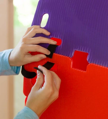 Take the construction fun outdoors and build your own play space with our Colorblock Fantasy Fortsâą Building Kit! Designed with the same concept as our customer-favorite indoor cardboard fort-building sets, but made of lightweight corrugated plastic (rather than cardboard), these brightly colored panels will stand out in your backyard, beckoning friends and neighbors to come join the building fun. Set includes 12 solid panels and four window panels in four bold colors. Connect with the included carton-building clips and a roll of hook & loop tape. Bonus-you can even design a storage box using five panels. Extend the life of this fort-building kit by storing the pieces indoors when building fun is complete. Building with our Fantasy Forts kits allows for open-ended creative construction-the possibilities for forts and play spaces are endless! Combine sets and build more!