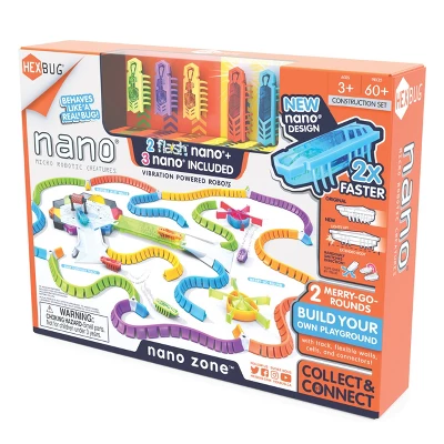 - 60+ PIECES: Use these Hexbug building toys to create your own Nano Bugs world! Let your Nano loose in the ultimate playground with 2 Merry Go-Rounds, flexible, connectible walls, cells & more!