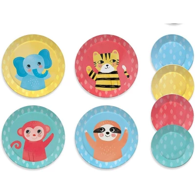 - The tea set is decorated with elephants, monkeys, tigers and sloths.