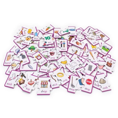 Junior Learning Rhyming Puzzles is a 71-piece puzzle set includes 24 puzzles for matching common rhyming words. Supports the development of phonemic awareness. The rhyming part of the word has been highlighted to support learning. Unique puzzle cut ensures the correct answer and lets students self-correct. For ages 4+, Grade PreK – K. Multicolored.
