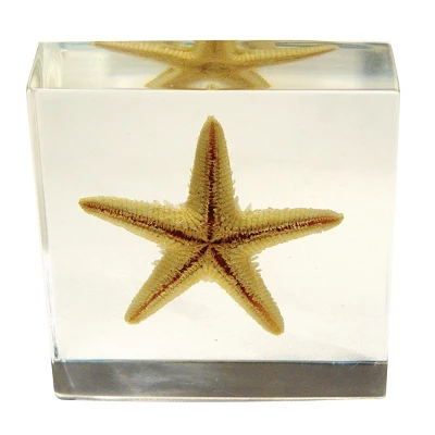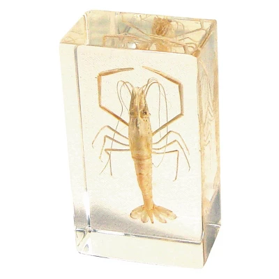 - Real insects and plants encased in a clear acrylic resin block