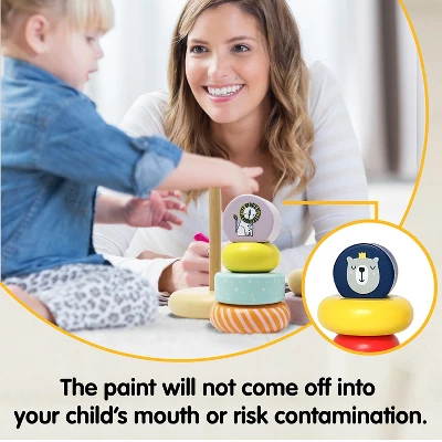 - MADE WITH 100% PREMIUM, NON-TOXIC WOOD: We care about the safety of your children, which is why our baby toy ring stacking tower is made with nontoxic wood and water-based paint. The paint will not come off into your childās mouth or risk contamination.