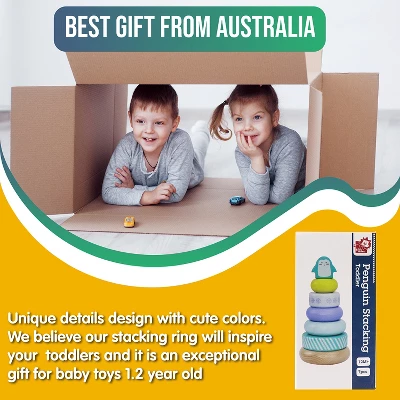 PRODUCT DESCRIPTION:The Penguin Stacking Tower, Made with Your Family in MindYOUR CHILD IS ALWAYS LEARNINGDid you know that your child is learning at every moment of the day? Invest in their educational future by providing them with wooden toys that pique their interest. As your child dives into this ring set, they will be able to:·Develop hand-eye coordination·Develop memory and cognitive recall·Problem-solve·Explore their imagination·Engage in create play·Develop their fine-motor skillsThese are all critical attributes that they will take with them throughout their lives.THE GOLD STANDARD IN TODDLER PLAYWe take our products seriously, which is why every single one of our wooden puzzle toys is safe, lightweight, durable, and easy to transport. Pack up this stacking tower and bring it with you wherever you go, keeping your kid entertained while also supporting their development. Say goodbye to phone screens and video games.UNISEX FUN FOR THE WHOLE FAMILYBoth little boys and girls will have fun with this stacking toy, keeping them busy for hours on end.WE CARE ABOUT YOUR SAFETYNon-toxic, sustainable wood and water-based paint were used in the making of this product. Your safety is of the utmost importance to us.