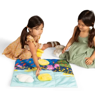 - SOFT CLOUDS AND SOFT SUNSHINE: The soft playset includes 1 quilted decorative mat, 5 fabric clouds and 5 fabric suns. Plush playset suitable for all ages; floor mat measures 36″ x 36″.