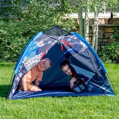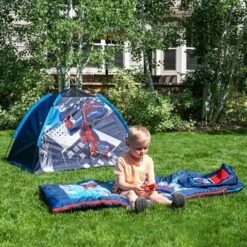 The Marvel Spiderman 5-piece Camp Kit includes all the essentials needed for outdoor adventures and indoor slumber parties: a dome tent, sleeping bag, drawcord backpack, LED flashlight and carabiner compass. The 4 ft. x 3 ft. tent features a simple two-pole setup and convenient carry bag. The sleeping bag has a full-length zipper that opens flat to work as a blanket, with breathable fabrics and cozy insulation to maintain a comfortable temperature all night long. The roomy, drawcord style backpack with mesh pocket and padded shoulder straps ensures no toy, stuffy or book needs to be left behind. Finally, no adventure is complete without a flashlight and compass, so your little hero can lead the way! You’ll be ready for any adventure your little one can dream up with the Spiderman 5-piece Camp Kit.