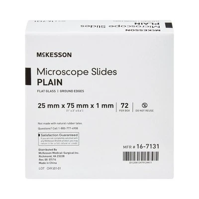 McKesson microscope slides are manufactured from pre-cleaned, high-quality glass with smooth edges. They are non-corrosive, non-fogging, and are available in premium and economy grade, as well as with beveled or ground edges to meet your needs.