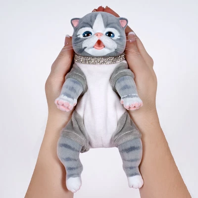 Here he goes, with eyes so bright and full of love. Paradise Galleries Baby Tabby Kitten will melt your troubles away as he cozily curls up next to you. Stroke his soft gray body with dark gray stripes as you pet this little bundle of joy. He wears a white sparkle crystal collar that brings out the color of his adorable blue eyes and he comes with a teal yarn bell ball to keep him a happy, healthy baby cat.Paradise Galleries Baby Tabby Kitten is part of our Furever Babies Collection and a perfect addition to your pet nursery. This 9-inch realistic baby cat doll is inspired by an American Shorthair kitten sculpted by world-renowned artist Ping Lau. He is made from our premium vinyl that is flocked for a velvety finish and a weighted plush body for that wonderfully lifelike feel. Arriving at you in an official Collectors Box. Intended for reborn doll collectors aged 3+.