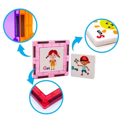 The 42 piece set features 20 graphics on 10 click-in cards with fun objects, numbers, and character artworks developing children’s STEM skills from visual learning, strong sense of color, artwork, geometrical shapes, magnetic polarity, mathematics, magnetic polarities, natural objects, emotional expressions, 3D architectural design, and structural engineering. The set also includes 32 other tiles to be used as a stand-alone set, or in conjunction with other PicassoTiles sets to offer open-ended possibilities to cultivate children’s creativity.