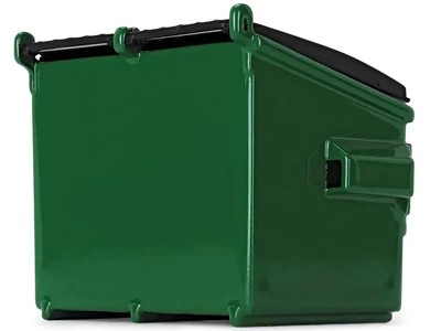 Brand new 1/34 scale diecast model of Refuse Trash Bin “Waste Management” Green and Black die cast model by First Gear.Brand new box.Detailed exterior.True-to-scale detail.Split-top opening lid.Diecast metal construction.Manufacturer’s original unopened packaging.Made of diecast metal with some plastic parts.Dimensions approximately W-2.25, D-1.5, H-2 inches.Compatible with 1/34 scale Mack Terra Pro Front End Loaders.