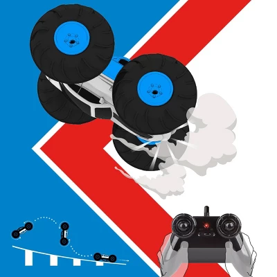 The Flip Stunt Rally RC Vehicle makes mastering and performing driving stunts incredibly easy! Its light and compact size, oversized tires, and reversible design are all optimized for endless flips, spins, and tricks! Oversized tires lined with textured grips make driving easy on almost any surface! Great for indoor and outdoor use, make any stage your arena. The tires’ size also act as a buffer, preventing crashes and making flips and turns even easier! Completely reversible, the Flip Stunt Rally car can be driven on either side (red or white) for even more stunt versatility! Flip the car over mid-movement and keep going without having to slow down. The reversible design is perfect for rough terrain, ramps and obstacle courses, and wall tricks!