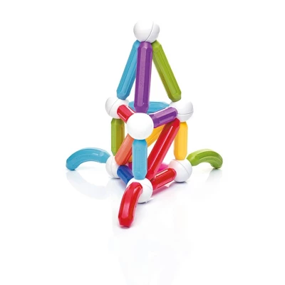 SmartMax enables young children to explore magnetism safely, with strong, oversized pieces that are specifically designed for handling by young kids. SmartMax products are safe and durable, made from the highest quality materials. Our magnets are incredibly strong, able to carry up to 60 times their own weight! SmartMax magnetic bars feature unique color codes: “Cold”-colored bars (blue, green, purple) attract “warm” colored bars (red, orange, yellow). Warm-colored bars repel other warm-colored bars, cold-colored bars repel other cold-colored bars. SmartMax products include complete, colorful guides with both product information and sample designs. All parts can be combined with all existing SmartMax sets, creating an endless range of possibilities!