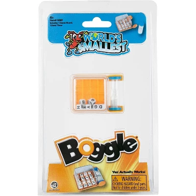 - WORLD’S SMALLEST: Boggle, the popular 3-minute head-to-head word search game is now available in miniature size!