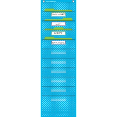 These lightweight and durable pocket charts feature colorful designs and hang easily from sturdy, metal grommets. Features 10 folder-sized pockets. Clear Label holders. Measures 14 x 46-1/2 inches.