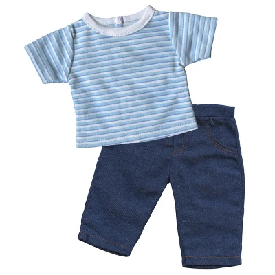 Dress dolls in fashionable designs just like you! Helps children develop nurturing and color matching skills. Includes outfits for boys and girls. Machine washable. 10 piece set. Please note: we strive to bring great quality and fit, however, dolls vary in style and shape, these clothes may not fit all 16″ dolls.
