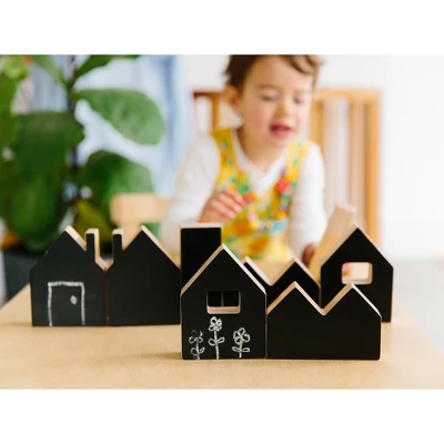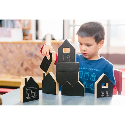 - This set features eight wooden blocks with chalkboard surfaces.