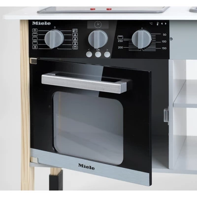 Just like the real thing, your child can play cook and baker with this fun Theo Klein Miele Kitchen Food Prep Play Set for toddlers and kids. This wooden toy comes with small parts and accessories and is recommended for children ages 3 years old and up.Your little one will have so much fun with this pretend kitchen set with different sound and light effects to bring the fun to life. Your mini chef can make anything from appetizers to desserts for customers using the high-quality metal and wood cooking accessories. This complete home kitchen toy kit includes a metal cooking pot with matching lid, frying pan, baking whisk, plus wooden cooking and mixing spoons. Your personal chef will love playing with all the gadgets and accessories this Theo Klein Miele Kitchen Mini Pretend Play Set has to offer. Let your little one’s imagination and creativity run free for years to come.
