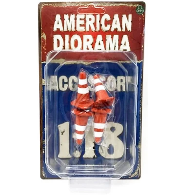 Brand new 1/18 scale of Traffic Cones Accessory Set of 4 pieces for 1/18 scale models by American Diorama.Comes in a blister pack.Does not come with the car shown. Only four traffic cones will be received.Approximate dimensions: 1.5 inches tall.