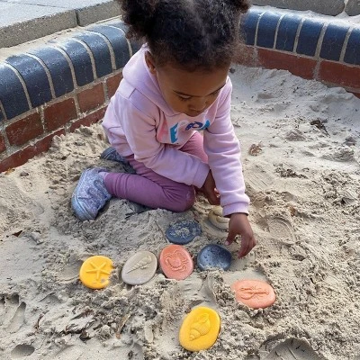 Be transported to the ocean with these beautifully tactile stones that reflect the natural treasures children might discover at the seashore! Designed for outdoor learning and investigative play, the stones are robust for lots of outside adventures! Made from a unique stone mix, they are durable enough to be used in water, dirt, mud and clay, and are easily cleaned. Perfect for outdoor discoveries, compare with the real things, make imprints in dough or sand, and make rubbings using wax crayons. Set contains eight stones; auger shell, crab, jellyfish, lobster, nautilus shell, seaweed, starfish and whelk shell. Stones measure approximately 2.25″.